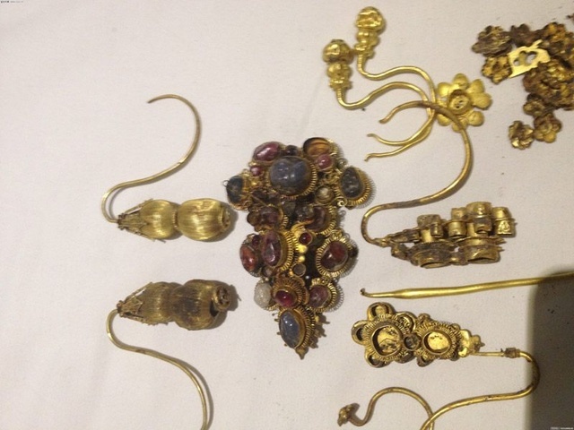 在第五天的时候,一位村民从一处悬崖石壁上发现了一个被人工封堵的暗洞,村民们挖了三天,才挖出两三米深。就在大家泄气之时,却发现洞旁有一个石孔,村民划燃火柴一看,竟发现里面闪闪,四处散落着众多金钗、金簪、金箍。这些金饰共计14件,虽然“财帛动”,但大家没有多作犹豫,直接将金银珠宝送去省文物局,经专家鉴定,这是一批明朝宫廷饰物,文物价值超过7000万元。